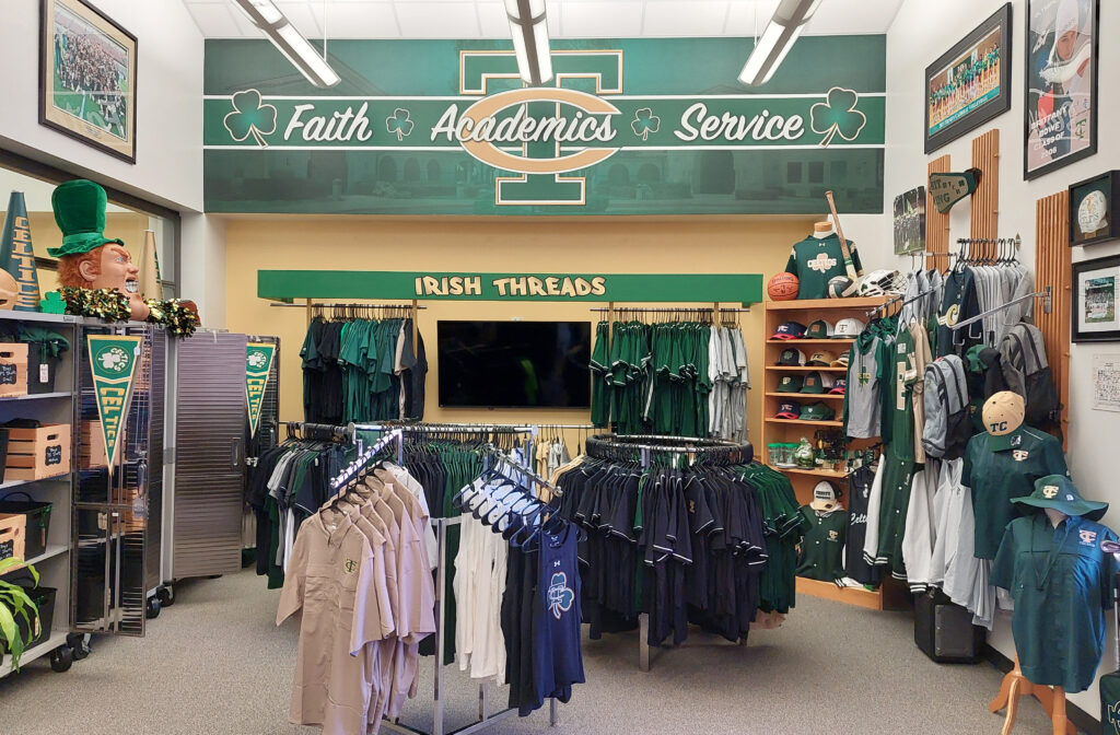 - All outerwear must be purchased through Risse Brothers School Uniforms or Irish Threads (school store located in the Athletics Office). The approved uniform shirt must be worn under the outerwear. Coats, hats, caps, hoodies, bandanas, gloves/mittens are not permitted.